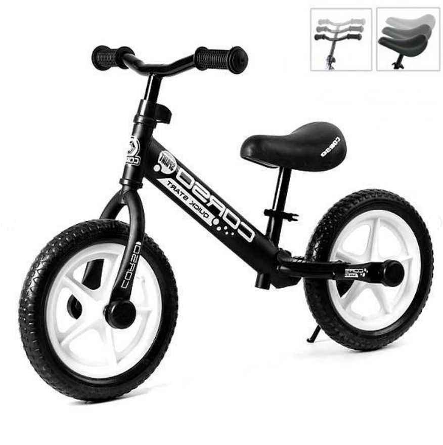 Велобег выполнен в форме двухколесного велосипеда. Однако, в отличии от него у велобега отсутствуют педали и цепь.Данная особенность и определяет принцип катания на нем, который напоминает езду на толокаре. Единственным отличием является тот факт, что, сидя на велобеге и отталкиваясь ножками от земли, необходимо держать равновесие.