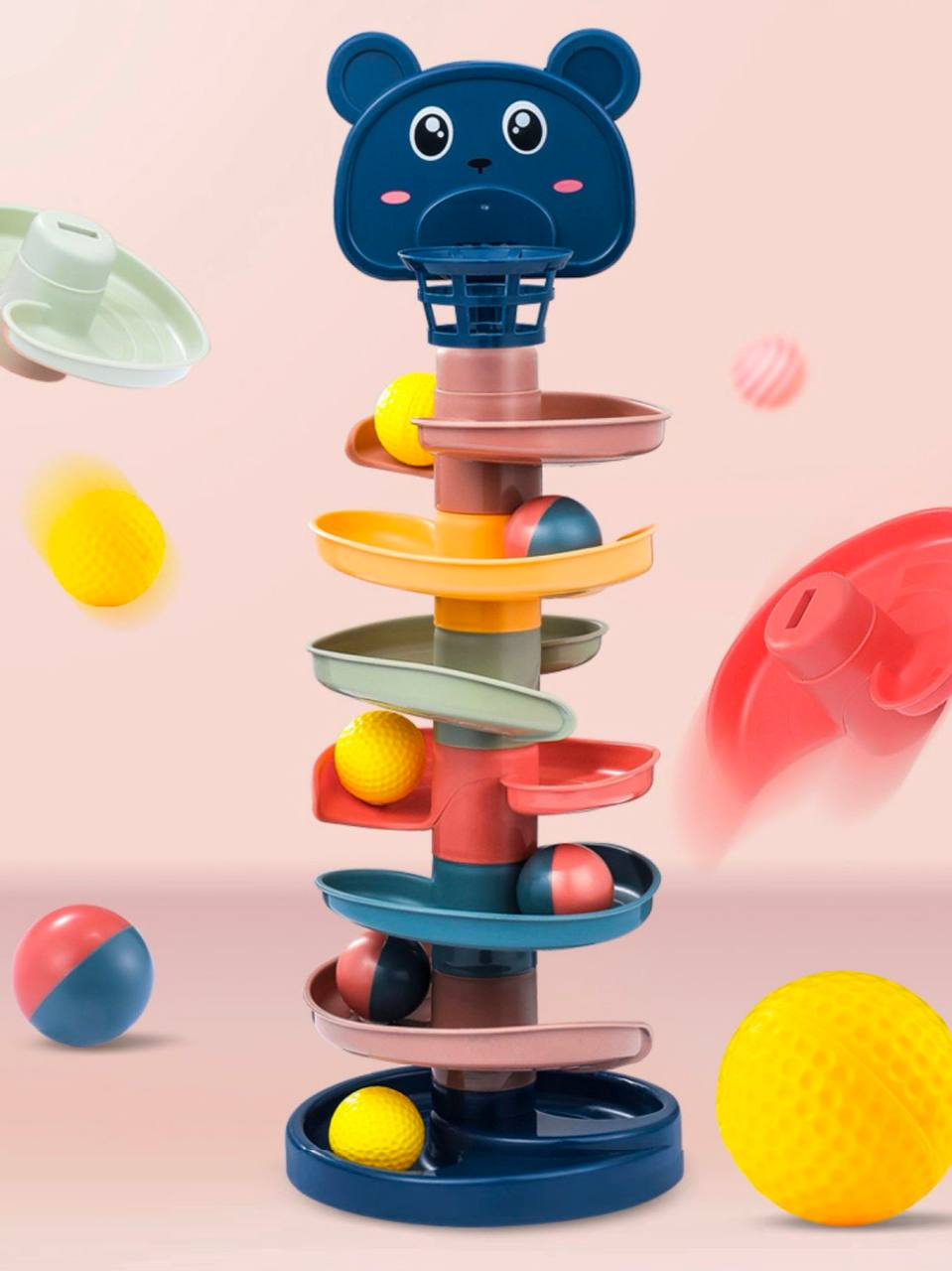 - У ігровий набір входить 6 кульки з громічними елементами горка на 7 поверхів.