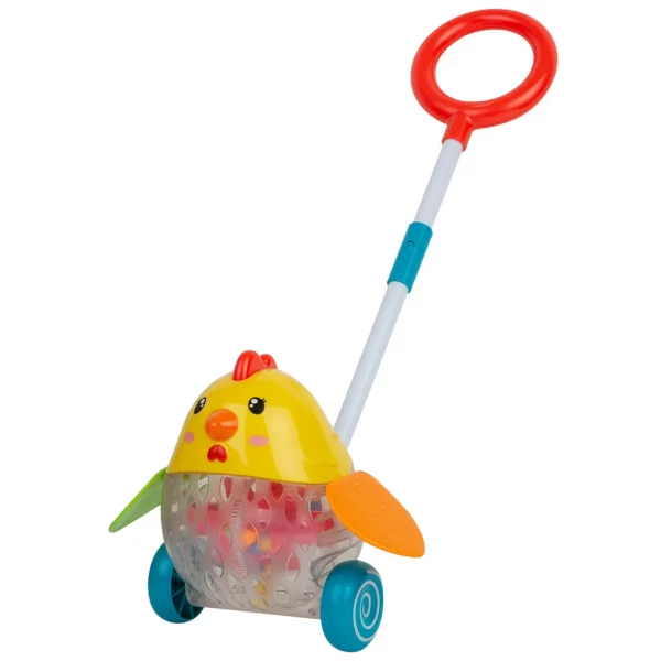 Виконана у вигляді каталки з ручкою, дана іграшка дозволить Вашому малюку почуватися впевненіше, маючи під рукою опору, щоб крокувати вперед. Взаємодіючи з каталкою, дитина навчиться розраховувати свої сили, зміцнюватиме м'язовий корсет. Крім того, іграшка має забавний зовнішній вигляд, прозора частина її корпусу світиться, при русі махає крилами. Усередині є гримливі елементи, що шумлять під час руху.